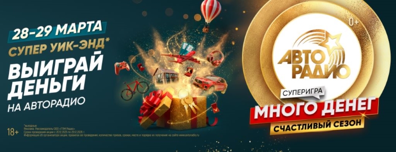 В игре «Много денег на Авторадио. Счастливый сезон» объявлен супер уик-энд. 28-29 марта каждый час – с утра и до вечера – ведущие будут раздавать деньги в прямом эфире. Чтобы стать участником: нужно заменить гудки в телефоне на гимн «Авторадио», внимательно слушать радиостанцию, дождаться звонка ведущего и верно назвать прозвучавшую песню. Регистрация в проекте по ссылке*.